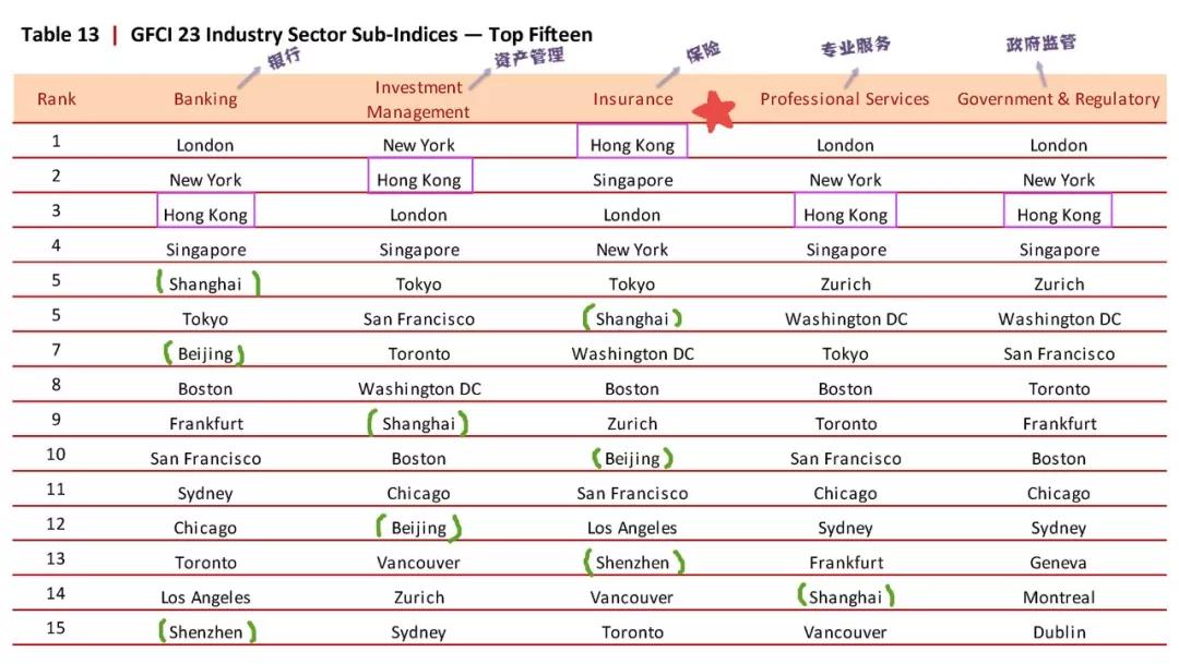 • 香港的金融專業(yè)服務(wù),排名世界第三