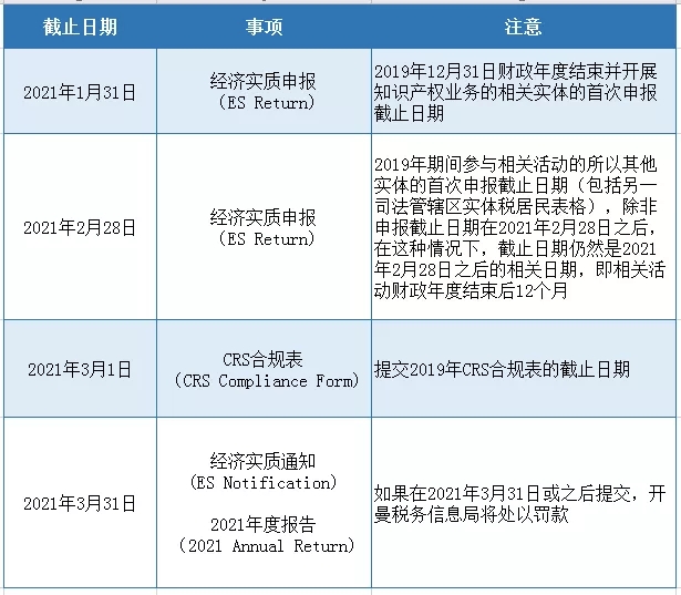 目前相關日期即將截止,除了2020年開曼實體經(jīng)濟實質(zhì)申報,還有關于CRS合規(guī)表的遞交、與2021年度的經(jīng)濟實質(zhì)通知與年度報告,應注意時間,提前做好相關準備,主動申報與積極參與合規(guī)事項,相關服務可咨詢我們。