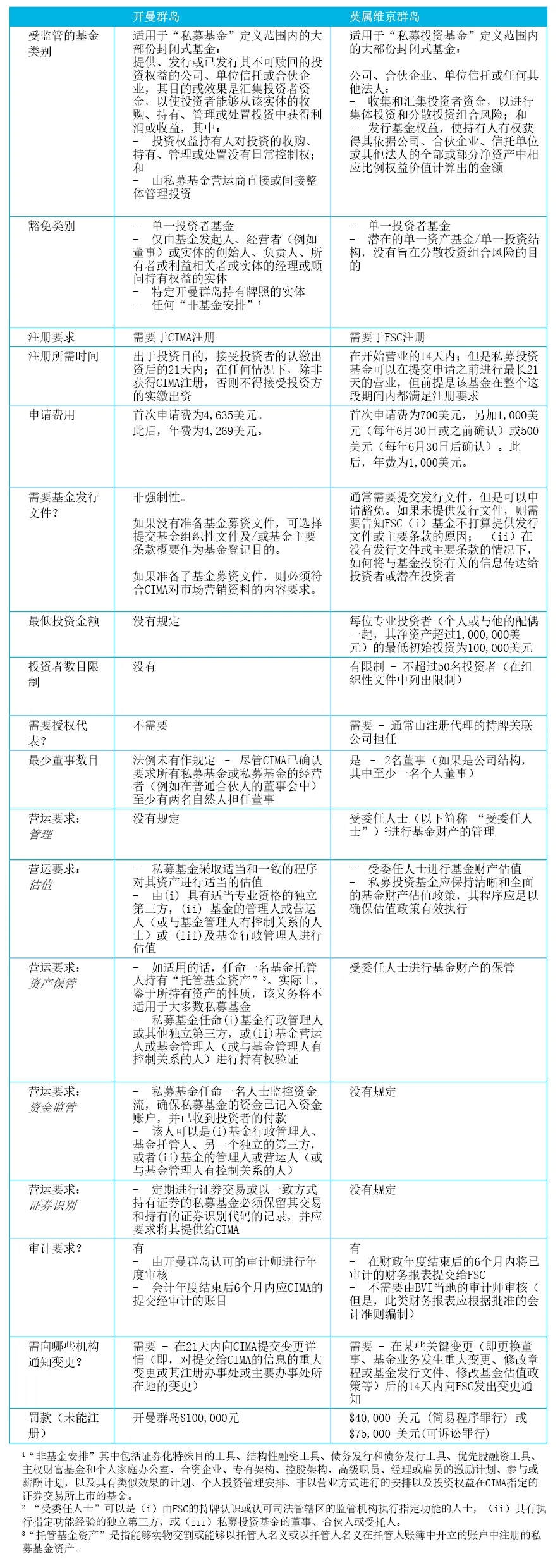 開曼群島與BVI私募基金制度之間的主要法規(guī)比較