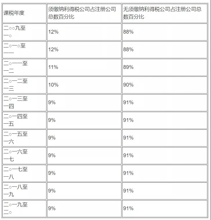 值得一提的是,從2019/2020課稅年度來看,交稅最多的5%注冊公司(約5700家)繳納的利得稅,占利得稅收入的90%。