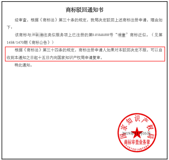 如果商標不通過,國家會下發(fā)商標駁回通知書,說明原因,并且會附上一段話:
